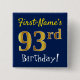 Blue, Faux Gold 93rd Birthday, With Custom Name 15 Cm Square Badge