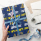 This wrapping paper design features a message like "FIRST-NAME’S 44th BIRTHDAY!", with the "44th" having a faux/imitation gold-like colour appearance, and with the name and "BIRTHDAY" in a fun, bold font. The name can be personalised, and the background is coloured blue. Wrapping paper like this could perhaps be used when wrapping birthday gifts being given to somebody in celebration of their forty fourth birthday. [~Z0000209]