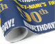Blue, Faux/Imitation Gold, "90th BIRTHDAY" Wrapping Paper