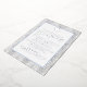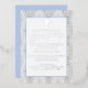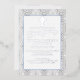 Design features a white lacey look as background to a white rectangular shape, bordered in blue. Shape is background to the image of a crucifix which is displayed above your text. Crucifix and text are featured in shimmering foil with the option to choose from gold, silver or rose-gold. Reverse side is pale blue.
