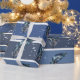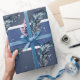 A beautiful gift wrap of a blue and white striped background and beautiful blue