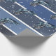 Blue Feathers On Blue and White Stripes Wrapping Paper