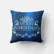 Decorate your home this holiday season with this classy and festive pillow. Featuring a white typography print with the words "Merry Christmas", decorative typography ornaments and two reindeers in white colour on a gradient blue background, it is sure to give your whole house a festive feel.