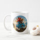 Start your mornings with a dash of adventure and Italian charm. This vibrant mug features a delightful illustration of a classic blue Fiat car speeding along a scenic coastal road. The roof is stacked with holiday essentials such as canoes, paddles, and deck chairs, ready for a seaside getaway. The car's number plate cheekily reads "CIAO," adding a touch of personality to this whimsical design. Perfect for car enthusiasts, travel lovers, or anyone dreaming of sunny escapes.