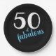 Blue Fifty and Fabulous Black Birthday Party Paper Plate