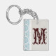 Blue Filigree Damask White Grey Swirly Design Paper Texture Paper-Texture Monogram Initial Personalised Key Chain