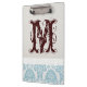 Blue Filigree Damask White Grey Swirly Design Paper Texture Paper-Texture Monogram Initial Clip Board Personalised