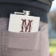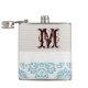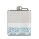 Blue Filigree Damask White Grey Swirly Design Paper Texture Paper-Texture Monogram Initial Whiskey Flask Personalised