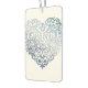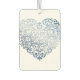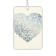Old-fashioned Blue Filigree heart on a heart shaped air freshener.