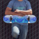 4 Fire Dragons, one on each Flip, 2 between the trucks. Font name is Flame. text is "BLUE FIRE DRAGONS" Unisex-design for grinding, or wall art- Birthday gift spectacular for teen.