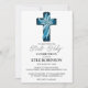 Celebrate your child's special day with these stylish and sophisticated first communion invitations. Featuring a beautiful navy blue watercolor background, a delicate cross design, and a touch of gold foil, these invitations are perfect for a modern, elegant celebration. The design is customisable to match your event's theme and colour palette.