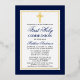 Elegant Navy Blue and Gold First Holy Communion Invitation with Cross. Gold Foil Frame. Gold Foil Cross. Photo Back.