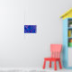 Poster featuring collage artwork depicting water animals - three blue fishes in seaweeds. Tissue paper, markers and ink pen. Fairytale illustration, underwater / nautical theme, cartoon style. This poster fits great for nursery or children room.