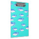 Blue fish on turquoise clipboard