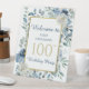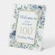 Blue Floral 100th Birthday Party Welcome Pedestal Sign