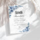 50th wedding anniversary invite with script lettering and blue flowers. The text and colours can be edited.