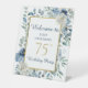 Blue Floral 75th Birthday Party Welcome Pedestal Sign