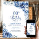 Blue Floral 80th Birthday Party Invitation