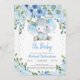 Blue Floral and Cute Elephant Boy Baby Shower Boho Invitation