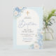Blue Floral Arch Baptism Invitation with Gold Cros
