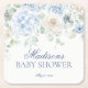 Blue Floral Baby in Bloom Hydrangea Baby Shower Square Paper Coaster