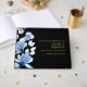 A black and gold elegant personalised blue floral celebration of life, funeral guest book. Designed by Thisisnotme©