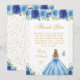 This elegant and glamorous birthday thank you card features a beautiful princess with blonde hair and fair skin in a blue ball gown. The text combines handwritten script and modern sans serif fonts for a classy and sophisticated look. The floral arrangements, butterflies and gold confetti create the perfect blend of rustic and chic.