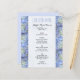 Affordable wedding or bridal shower luncheon menu template with pale blue hydrangea flower border. Smaller, 4x5 inch paper, is affordable and pretty. Easily customise the title in periwinkle blue, and the remaining black text with all menu items.