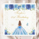 This elegant and glamourous birthday party napkin features a beautiful princess with brown red hair and fair skin in a blue ball gown. The text combines handwritten script and modern sans serif fonts for a classy and sophisticated look. The floral arrangements, butterflies and gold confetti create the perfect blend of rustic and chic.