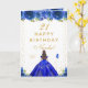 This elegant and glamorous birthday card can be personalized with a name or title such as daughter, granddaughter, niece, friend etc. The design features a beautiful princess with brunette hair and fair skin in a royal blue ball gown. The text combines handwritten script and modern sans serif fonts for a classy and sophisticated look. The floral arrangements, butterflies and gold confetti create the perfect blend of rustic and chic.