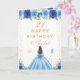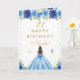 Blue Floral Brunette Hair Girl Birthday Card