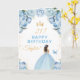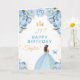 Blue Floral Brunette Hair Girl Happy Birthday Card