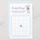 Create unforgettable memories at your bridal shower with our Blue Petals and Prosecco Bingo Cards! Designed with delicate floral accents, these cards encourage friendly competition among guests, guaranteeing a flurry of fun and excitement. A sip of prosecco, a splash of cheer, and lots of bridal bingo! Who's ready for some bubbly fun? Edit text to fit your bridal shower needs. For matching items please visit our Blue Petals and Prosecco Collection