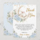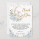 Blue Floral Bunny Rabbit Over the Moon Baby Shower Thank You Card