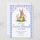 Blue Floral Bunny Watercolor Gingham Ribbon Easter Invitation