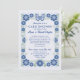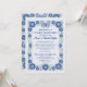 This personalized anniversary card shower invitation is designed for hosting a shower by mail, inviting family and friends to send anniversary cards to a special couple celebrating a milestone wedding anniversary. The hand drawn design features a retro inspired Talavera style floral border frame with a detailed butterfly at the top, created in pretty blue colors, with a spacious center area for customizable text so you can add names, anniversary year, party details, mailing address, and instructions for when and where to send the cards. The back of the invitation showcases a coordinating extension of the floral artwork for a cohesive, artistic presentation. Ideal for 25th anniversary, 40th anniversary, 50th golden anniversary, or any milestone celebration where loved ones are honoring the couple from afar, this custom anniversary card shower invite is perfect for long distance family, virtual celebrations, surprise anniversary tributes, and memory keepsake projects, appealing to buyers searching for anniversary card shower invitation, shower by mail anniversary invite, milestone anniversary celebration invitation, send a card party invite, personalized anniversary announcement, and retro floral butterfly stationery.