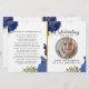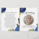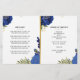 Customise this modern, elegant funeral program with your own photo and text to create a special tribute to your Beloved. An 'In Loving Memory' program featuring Blue Floral botanical and gold accent memorial program. On the front cover is a photo of your loved one, their name, dates, the memorial venue, and the date of the event. On the inside is an obituary and order of service, and on the back is a thank you note and the venue of the