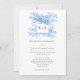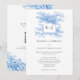 Blue Floral Chinoiserie 2-sided QR Code Monogram Invitation