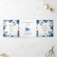 Blue floral Chinoiserie peony wedding program Tri-Fold Programme
