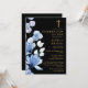 This black and gold elegant blue floral Christian celebration of life and remembrance invitation can be personalised with your information in classic typography. Designed by Thisisnotme©