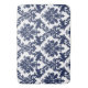 Navy-blue elegant floral vintage damasks pattern with a white background.