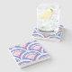 blue floral damask pattern stone coaster