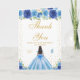 Blue Floral Dark Skin Girl Birthday Thank You Card