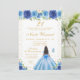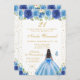 Blue Floral Dark Skin Princess Birthday Party Invitation