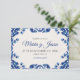 This Blue Floral Elegant Fiesta Spanish Wedding Save the Date design features delicate blue floral and swirl motifs inspired by traditional Mexican Talavera pottery, arranged elegantly in the corners. The deep blue hues contrast beautifully against the soft, textured white background, creating a clean and refined look. Ideal for wedding invitations or formal event stationery, this design adds a touch of cultural charm and timeless elegance.