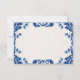 This Blue Floral Elegant Fiesta Spanish Wedding Thank You Card design features delicate blue floral and swirl motifs inspired by traditional Mexican Talavera pottery, arranged elegantly in the corners. The deep blue hues contrast beautifully against the soft, textured white background, creating a clean and refined look. Ideal for wedding invitations or formal event stationery, this design adds a touch of cultural charm and timeless elegance.
