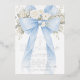 Blue Floral Eucalyptus Bow Boy Baptism Foil Invitation