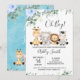 Blue Floral Eucalyptus Four Safari Baby Shower Invitation