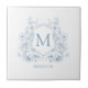 Blue Floral Family Crest Monogram Ceramic Tile