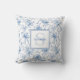 Blue Floral French Toile Monogram Name Cushion